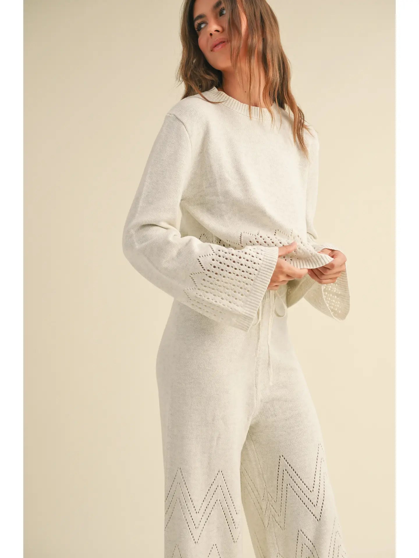 BORDER CROCHET KNITTED TOP - OATMEAL