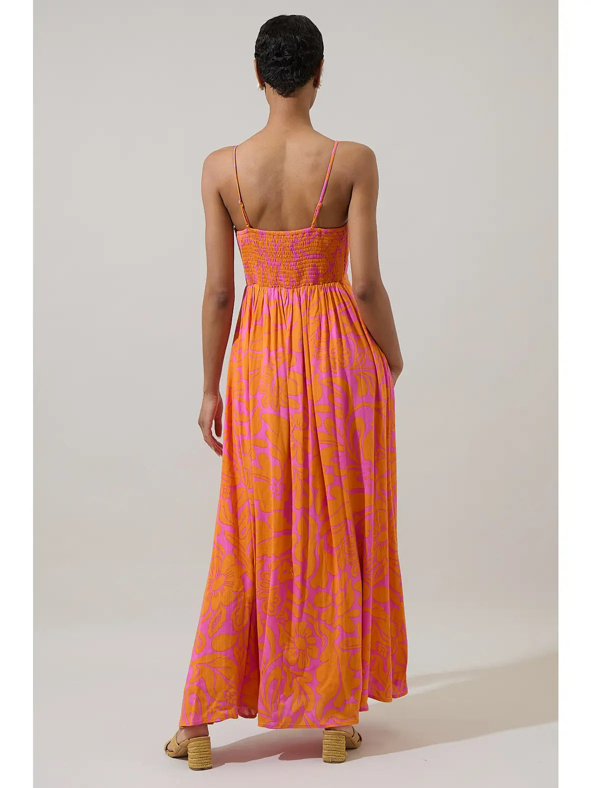 KACI FLORAL VIN SMOCKED MAXI DRESS