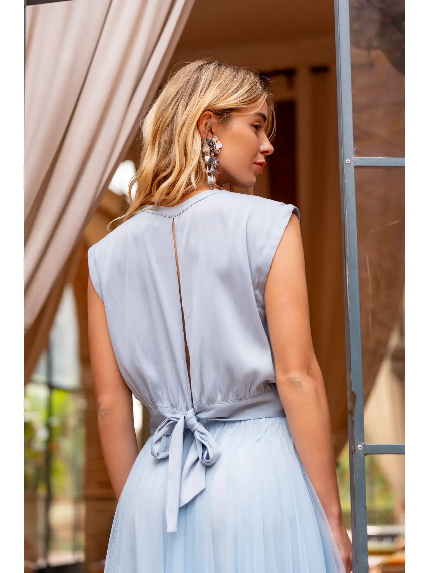 MAGUIE BACK-TIE CROP TOP - SKY BLUE