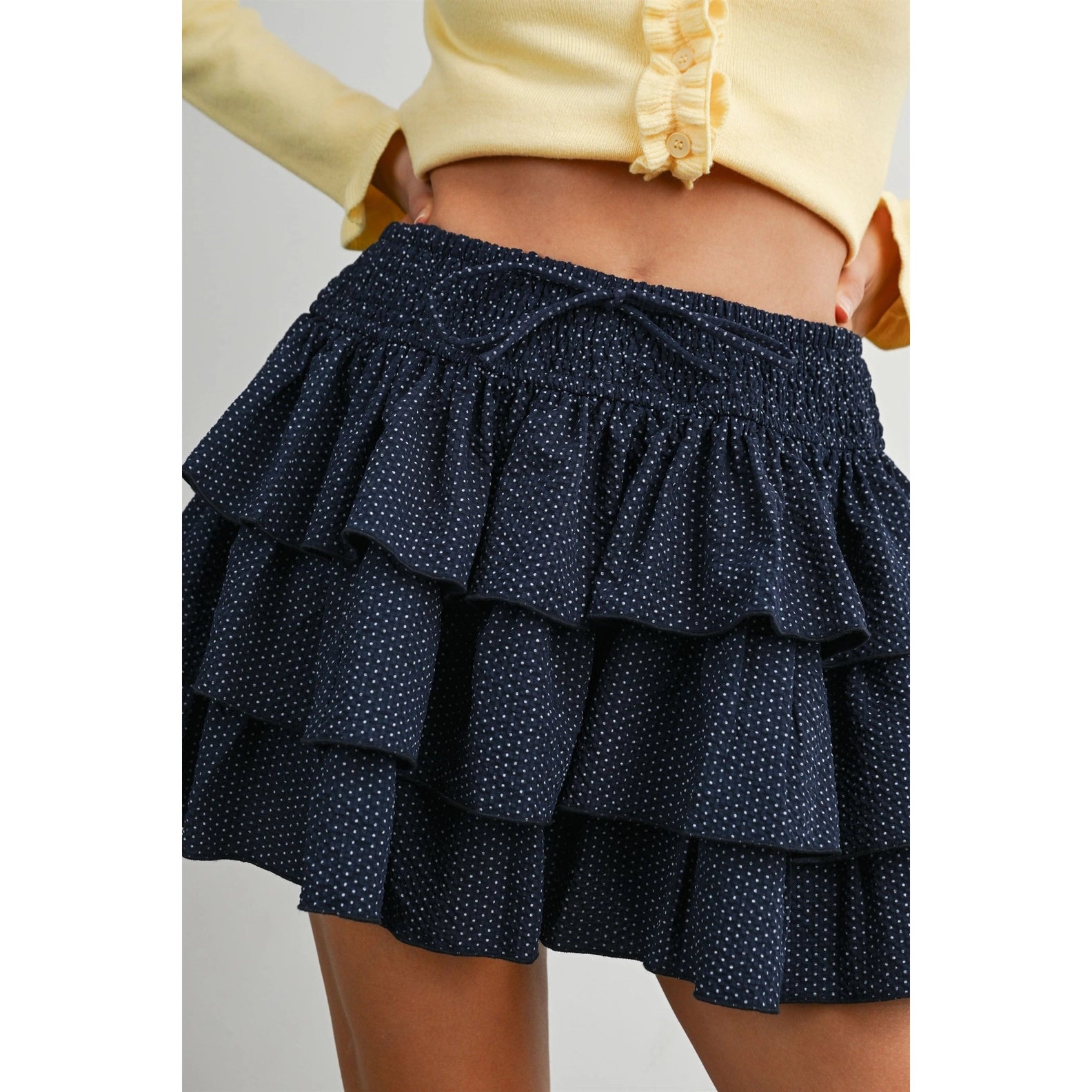 POLKA DOT TIERED RUFFLE MINI SKIRT