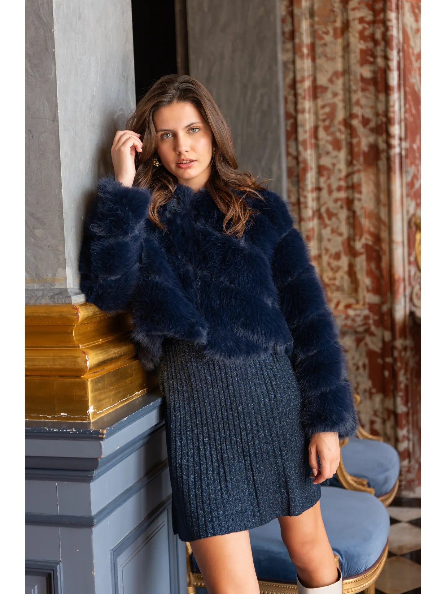 PAULA SHORT FAUX FUR JACKET - NAVY