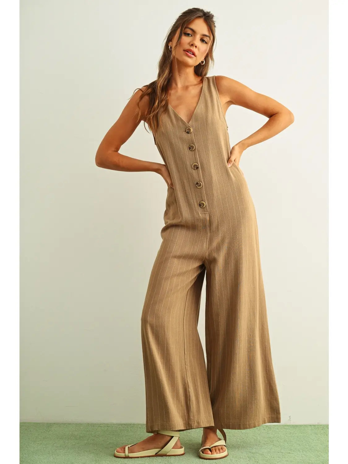 STRIPED PATTERN BUTTON FRONT JUMPSUIT